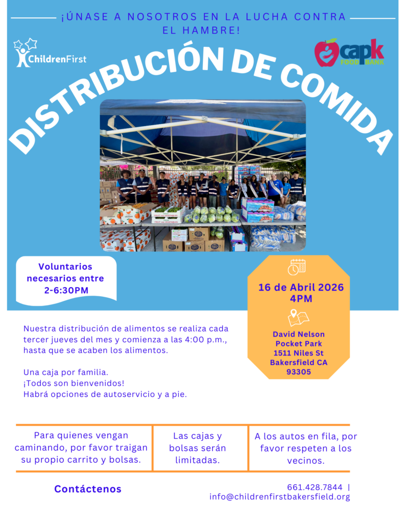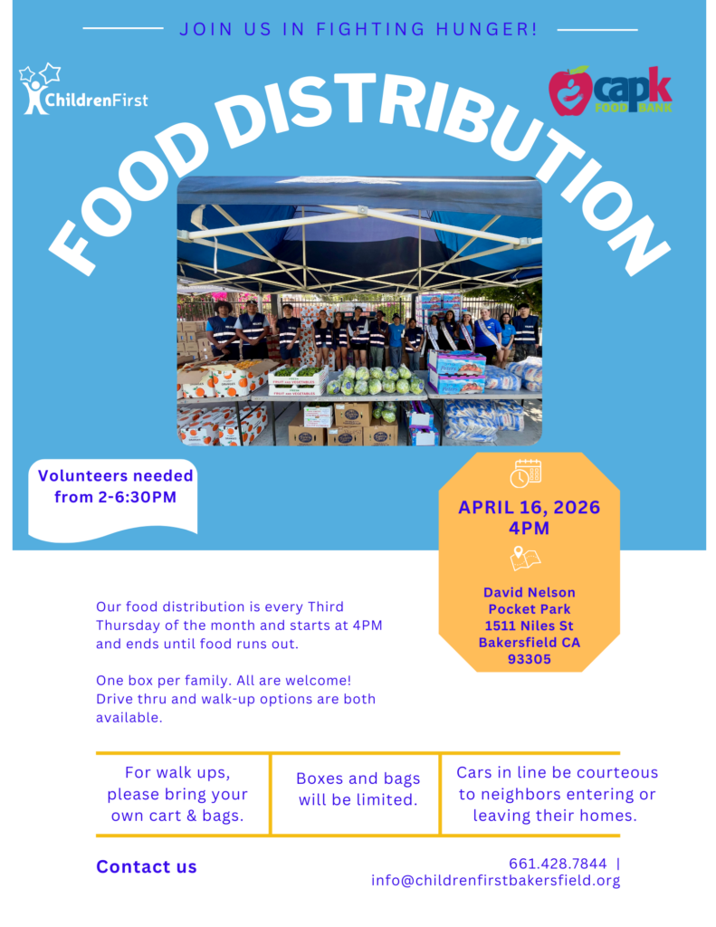 Setup: 2PM-4PM; Distribution of Food: 4PM – until food runs out; Cleanup: 5:30PM-6:30PM *times may vary